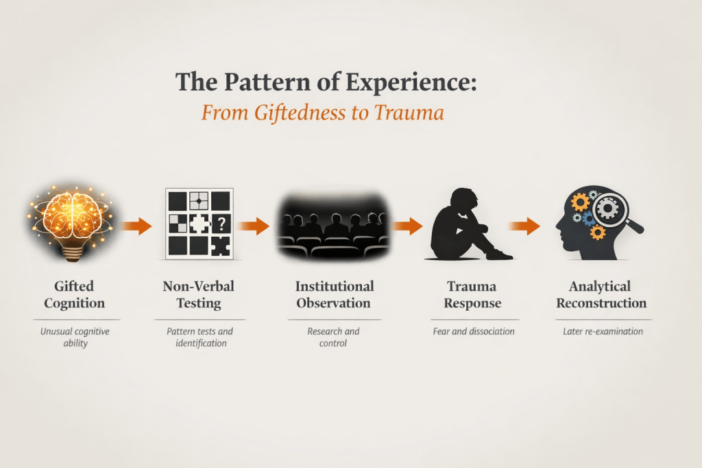 It is not possible to determine the precise purpose of every activity that took place in educational or observational settings during this period. Institutional records rarely capture the full experience of the children involved, and many events described by participants were not formally documented. The account presented here therefore does not attempt to assign responsibility for specific actions. Instead, it situates lived experience within the broader historical context of psychological research practices, educational assessment, and institutional decision-making in the United Kingdom during the late twentieth century.